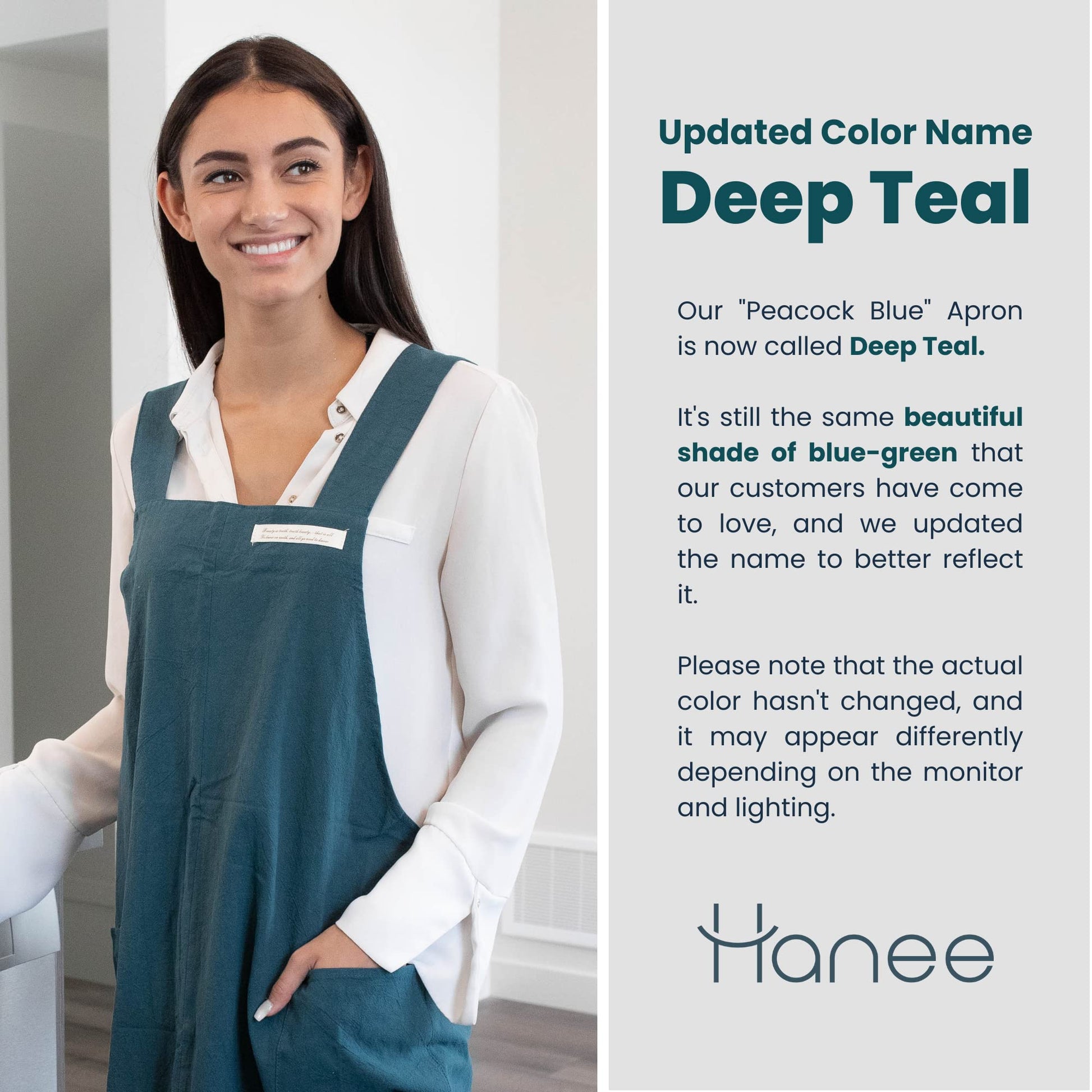 Brand: HANEE | Color: Deep Teal | Features: 100% cotton cross-back apron with large square pockets. Unisex, one-size-fits-most design with no ties. Durable, machine-washable, and highly absorbent. Comfortable fit for easy movement with wrap-around coverage. Ideal for kitchen, gardening, or work. Package Dimensions: 9.5 x 8.1 x 1.1 inches.