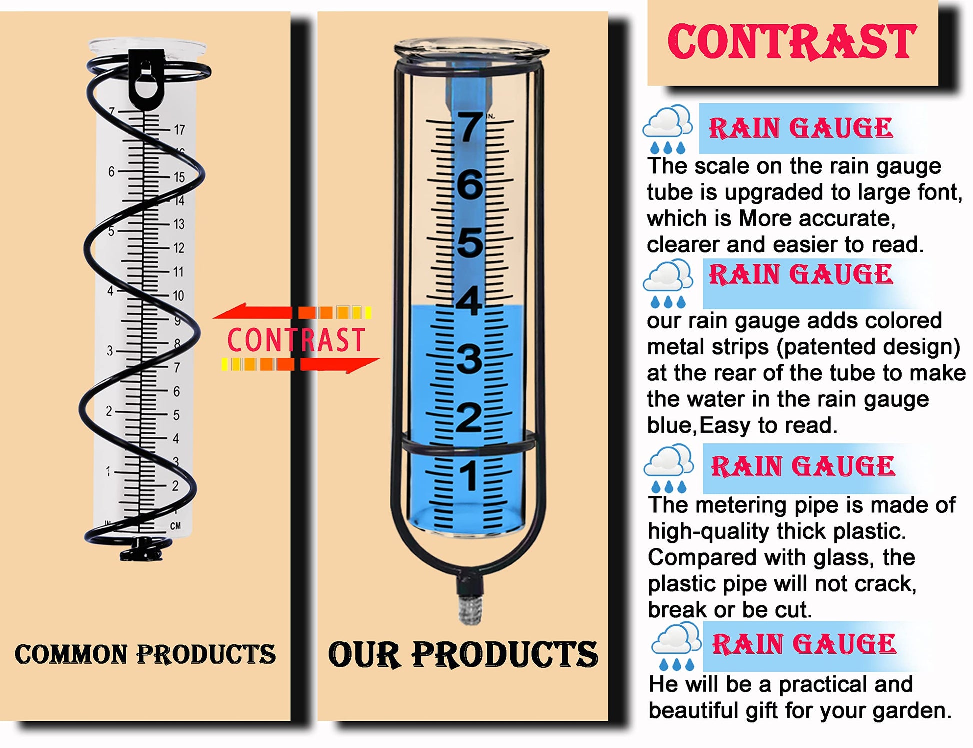 JMBay Rain Gauge – Freeze-proof with large, easy-to-read numbers. Adjustable height (19" or 29"), durable metal stakes, and clear plastic tube. Ideal for yard, garden, and lawn decor. Dimensions: 10.8 x 3.0 x 2.8 inches.