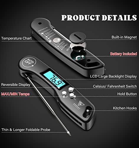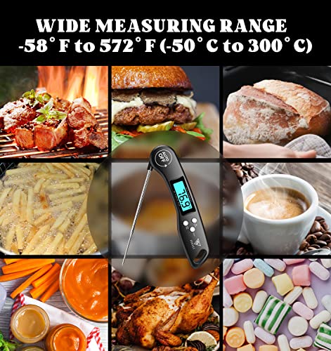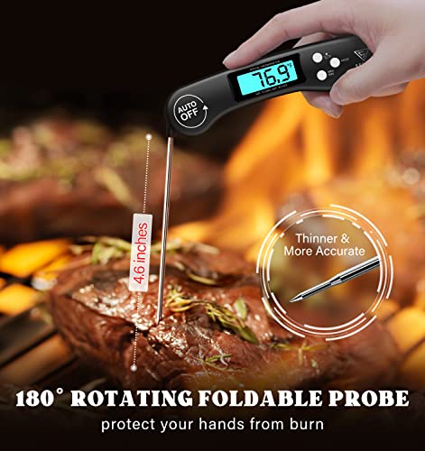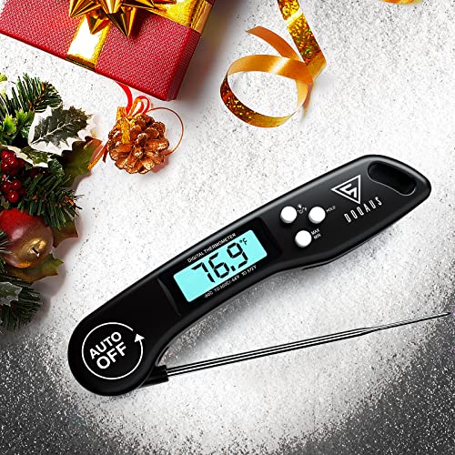 DOQAUS Instant Read Meat Thermometer – Accurate readings in 2-3 seconds, wide temp range (-58°F to 572°F), 4.6" stainless steel probe, reversible backlit display, and auto-shutoff. Ideal for cooking, grilling, BBQ. Dimensions: 6.1 x 1.5 x 0.9 inches.